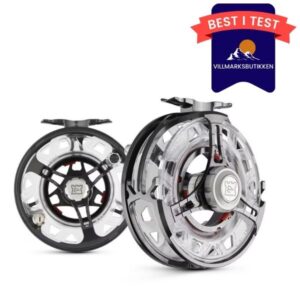 | Oppsett i testen: | Orvis Hydros II Large Arbor #3–5. Stang 9’ #5. Snøre WF5F. Fortom 9 ft. Backing 80 m / 9 kg. |